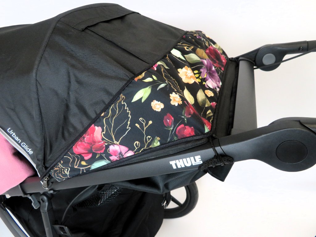 Dekorativer Sonnen- und Windschutz für das Verdeck des Thule-Kinderwagens
