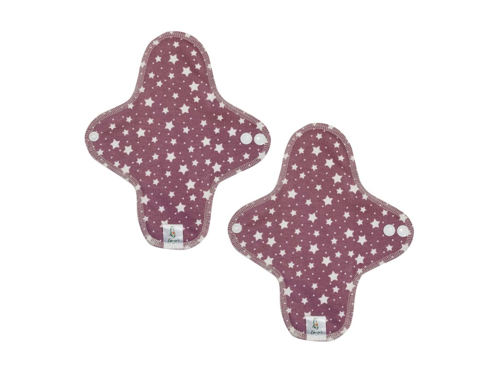 Tagesbinden aus Bio-Baumwolle Midi – Lila Stars 2 Stück