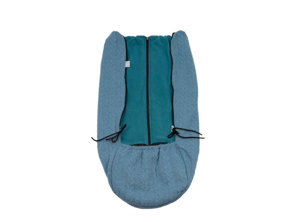 - Tiefe eingenähte Tasche für die Beine, die unter die Unterlage geschoben werden kann, sodass das Kind perfekt vor Wind und Kälte geschützt ist