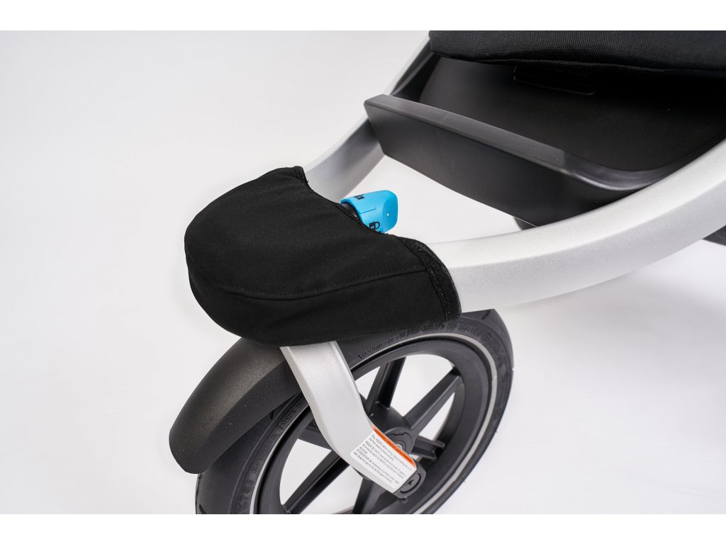 Die Schutzkappe ist einfach zu verwenden: Sie können sie mit Druckknöpfen sicher festmachen. Durch die Schutzkappe wird die Arretierung des Buggyrades in keiner Weise beeinträchtigt.